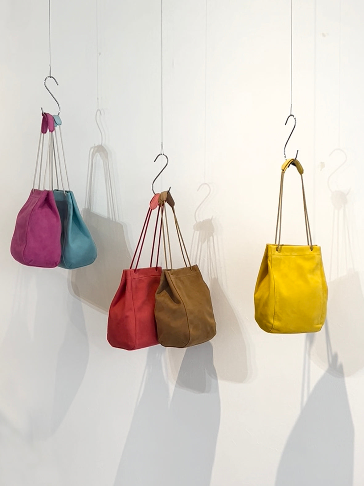 鮮やかな色、滑らかな手触りのシープスエード素材が魅力の、軽やかで上質なショルダーバッグ " シープシルキーシリーズ "