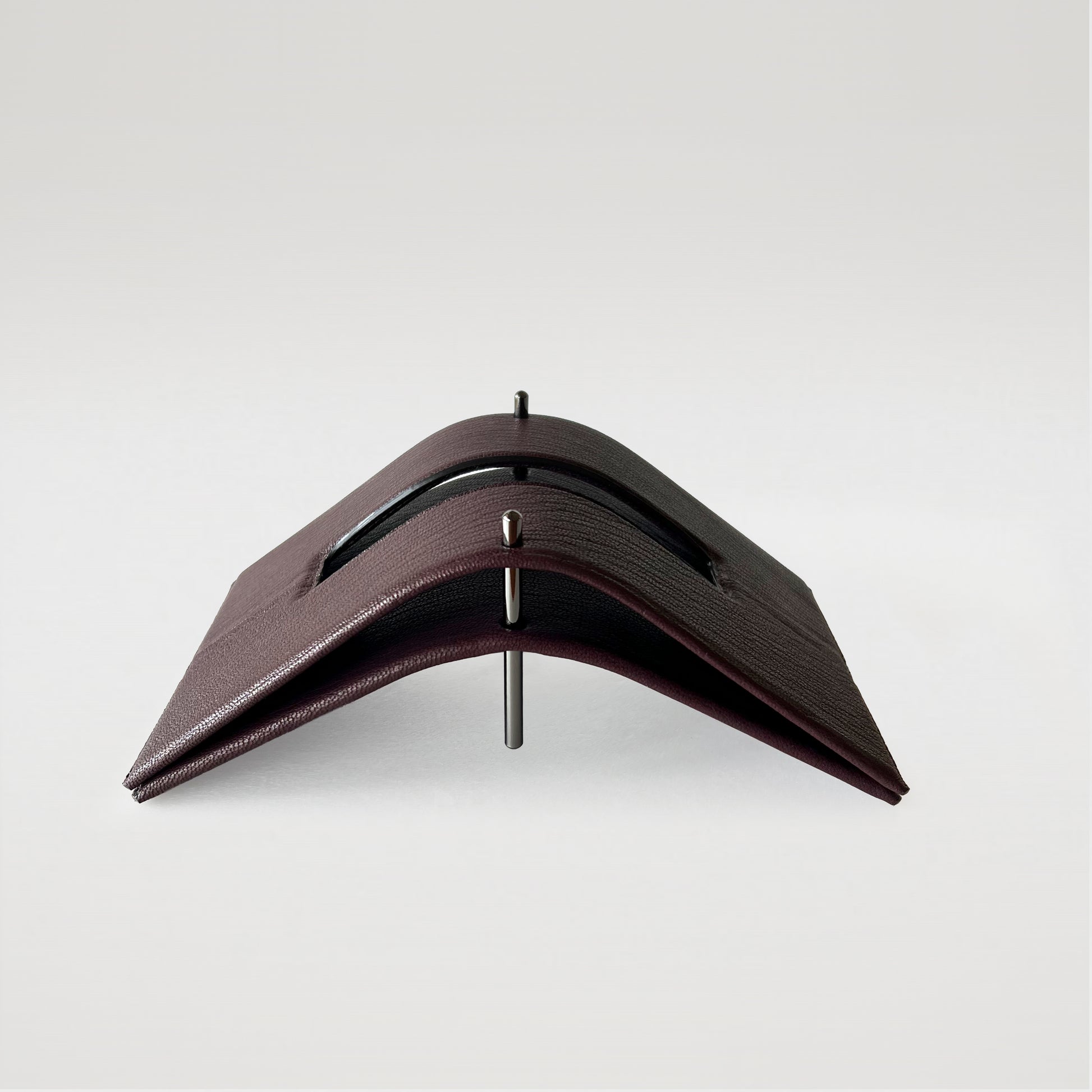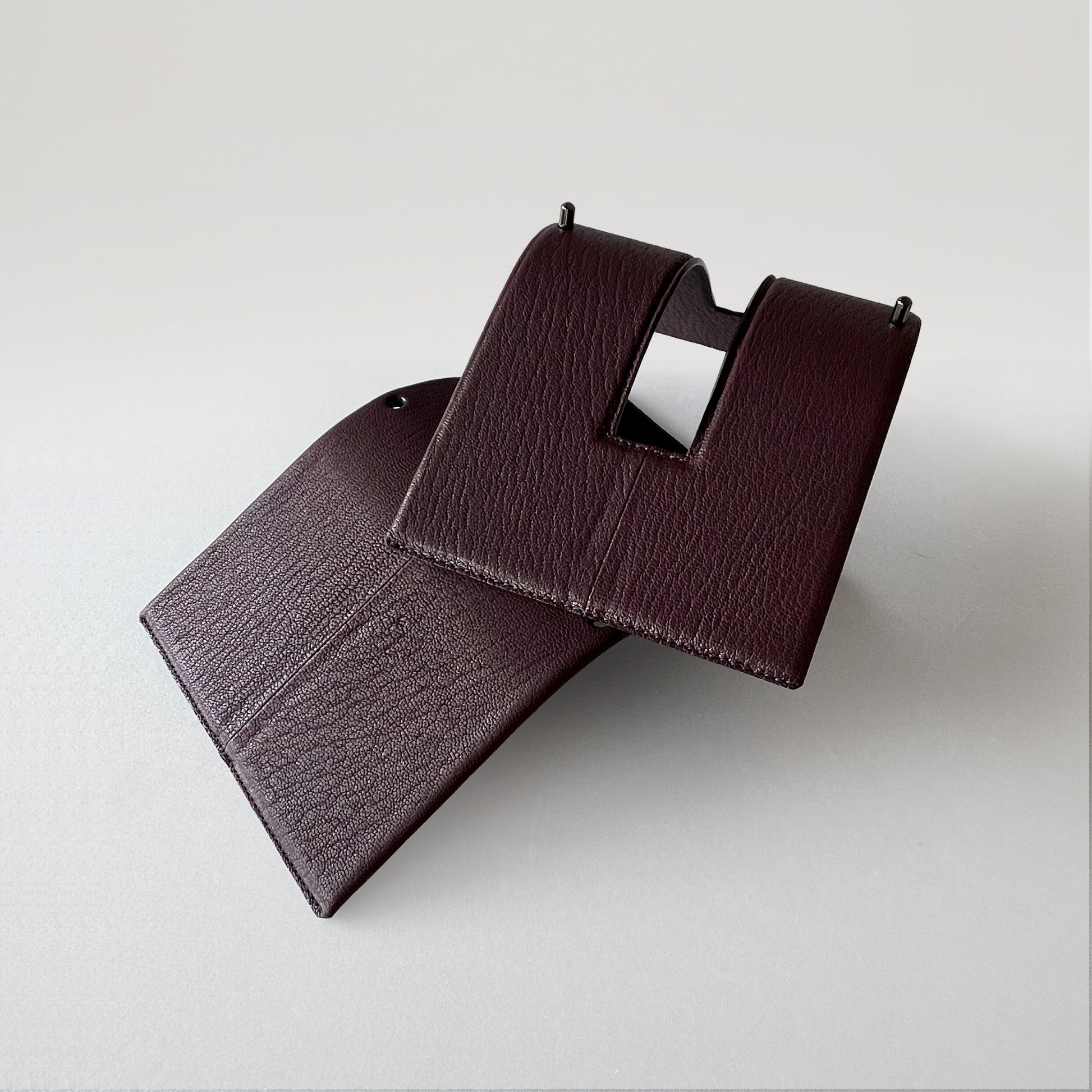新色のバーガンディは、ゴート(山羊)革独特の特徴であるシボをそのままに仕上げた素材を使用しています。赤と紫が混ざった深みのある色で、洗練された印象を与え、高級感と上品さを演出します。